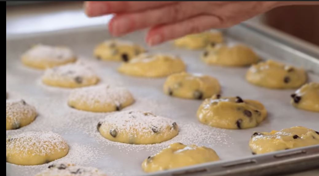 Ας τα τοποθετήσουμε σε απόσταση μεταξύ τους γιατι στη συνέχεια θα τα πασπαλίσουμε με ζάχαρη άχνη πριν μπουν στο φούρνο.