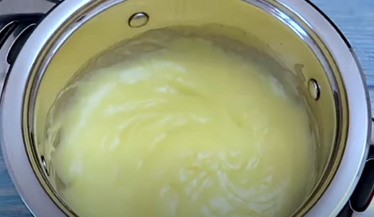 Βάζουμε το κατσαρολάκι σε χαμηλή φωτιά και ανακατεύουμε συνεχώς μέχρι να πήξει η κρέμα.