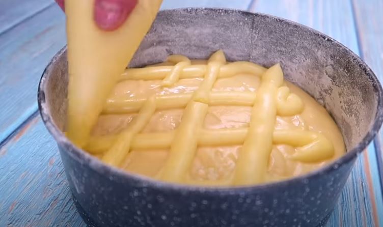 Από πάνω φτιάχνουμε με το κορνέ πλέγμα με την κρέμα