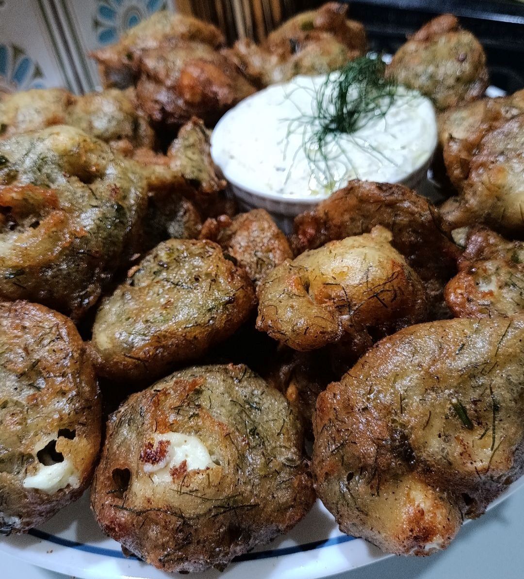 - Σερβίρω τους ζεστούς Μαραθολούκουμάδες με τη δροσερή σος γιαουρτιού. Γίνονται πάρα πολλοί φίλοι μου, φτάνουν για όλους!