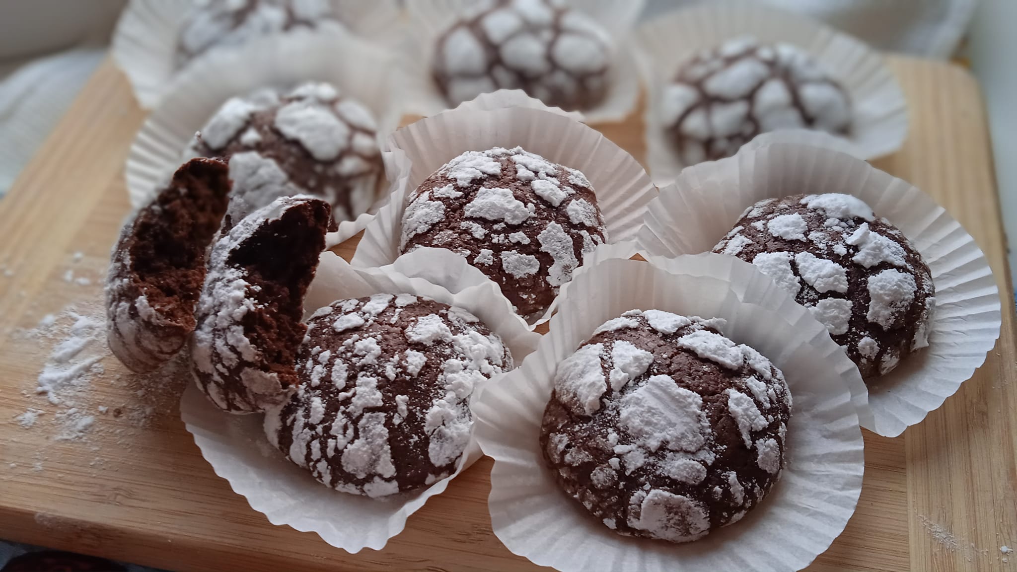 4) Πλάθουμε μπαλάκια των 35-40 γραμμαρίων και τυλίγουμε κάθε μπάλα σε ζάχαρη αχνη