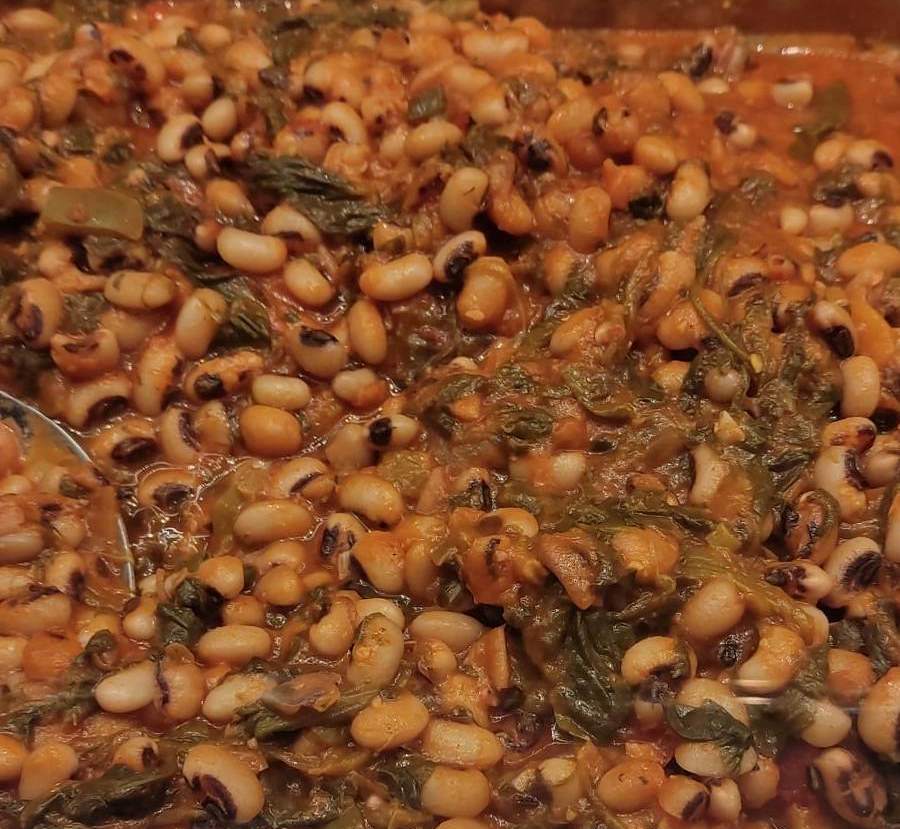 Περίπου 5′ πριν γίνουν τα φασόλια ρίχνουμε στην κατσαρόλα τα χόρτα, ανακατεύουμε να αναμειχθούν καλά και να ενσωματωθούν.
