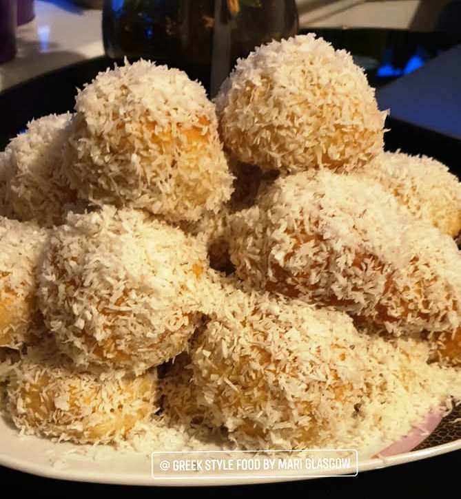 Τα αλείφουμε όλες τις πλευρές με νιφάδες καρύδας και τα αφήνουμε στην άκρη. Τα σερβίρετε όπως θέλετε!