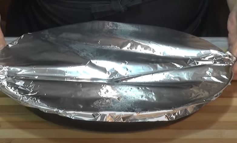 σφραγίζουμε το ταψάκι από πάνω με αλουμινόχαρτο και ψήνουμε στους 190 βαθμούς για 60 λεπτά.