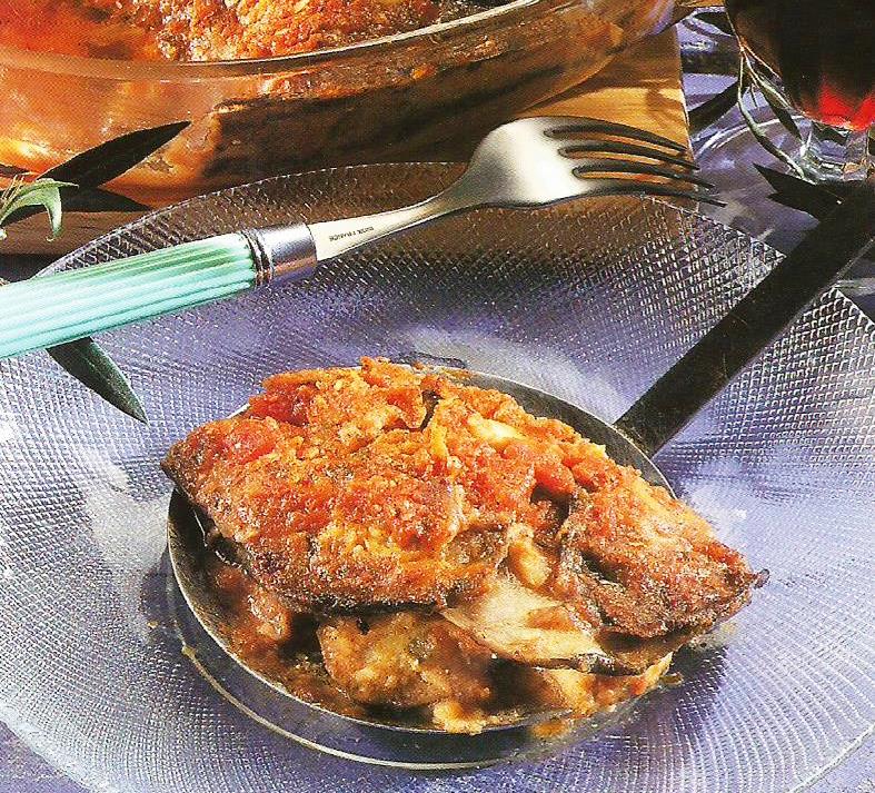 σε καυτό λάδι. Στραγγίστε τες σε απορροφητικό χαρτί κουζίνας. Ανακατέψτε τα τυριά με τα μπαχαρικά, και λίγο φρεσκοτριμμένο πιπέρι. Αλείψτε με λίγο λάδι ένα μακρόστενο πυρέξ και πασπαλίστε το με 1 κουταλιά φρυγανιά. Στρώστε μέσα το 1/3 από τις μελιτζάνες, καλύψτε με το 1/3 από τα τυριά και περιχύστε με το 1/3 της σάλτσας. Επαναλάβετε τις στρώσεις τελειώνοντας με τη σάλτσα.