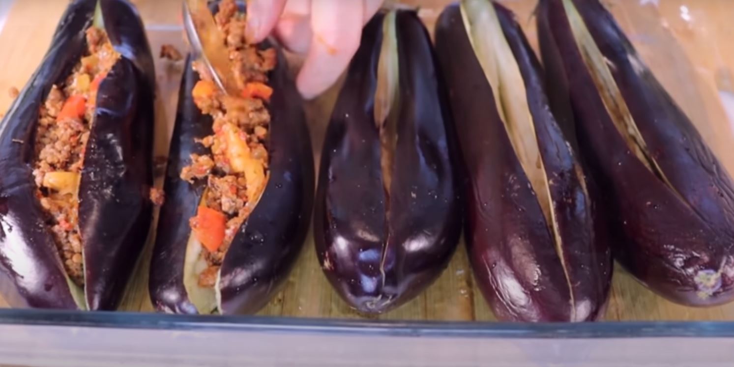 Τις χαράζουμε στην επιφάνεια τις ανοίγουμε και τις γεμίζουμε με το μείγμα του κιμά.