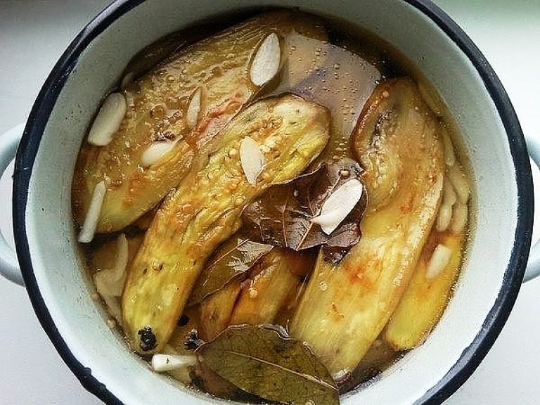 Φυσικά η γεύση ήταν διαφορετική. Μετά την πρώτη μέρα, η γεύση ήταν πιο κορεσμένη, την τρίτη μέρα, τα κομμάτια ήταν πιο μαριναρισμένα. Αλλά μέχρι την πέμπτη μέρα οι μελιτζάνες μας δεν υπήρχαν.