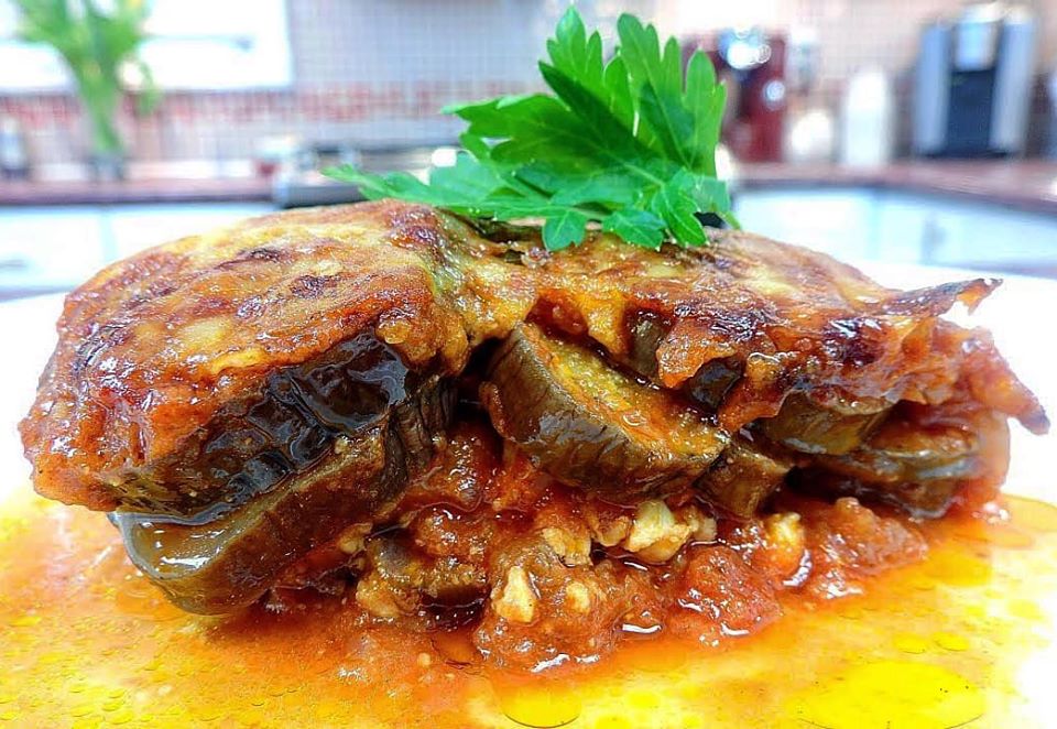 20.Επαναλάβετε 1-2 στρώσεις με μελιτζάνρες και βάλτε από πάνω την άλλη μιση σάλτσα από το τηγάνι
