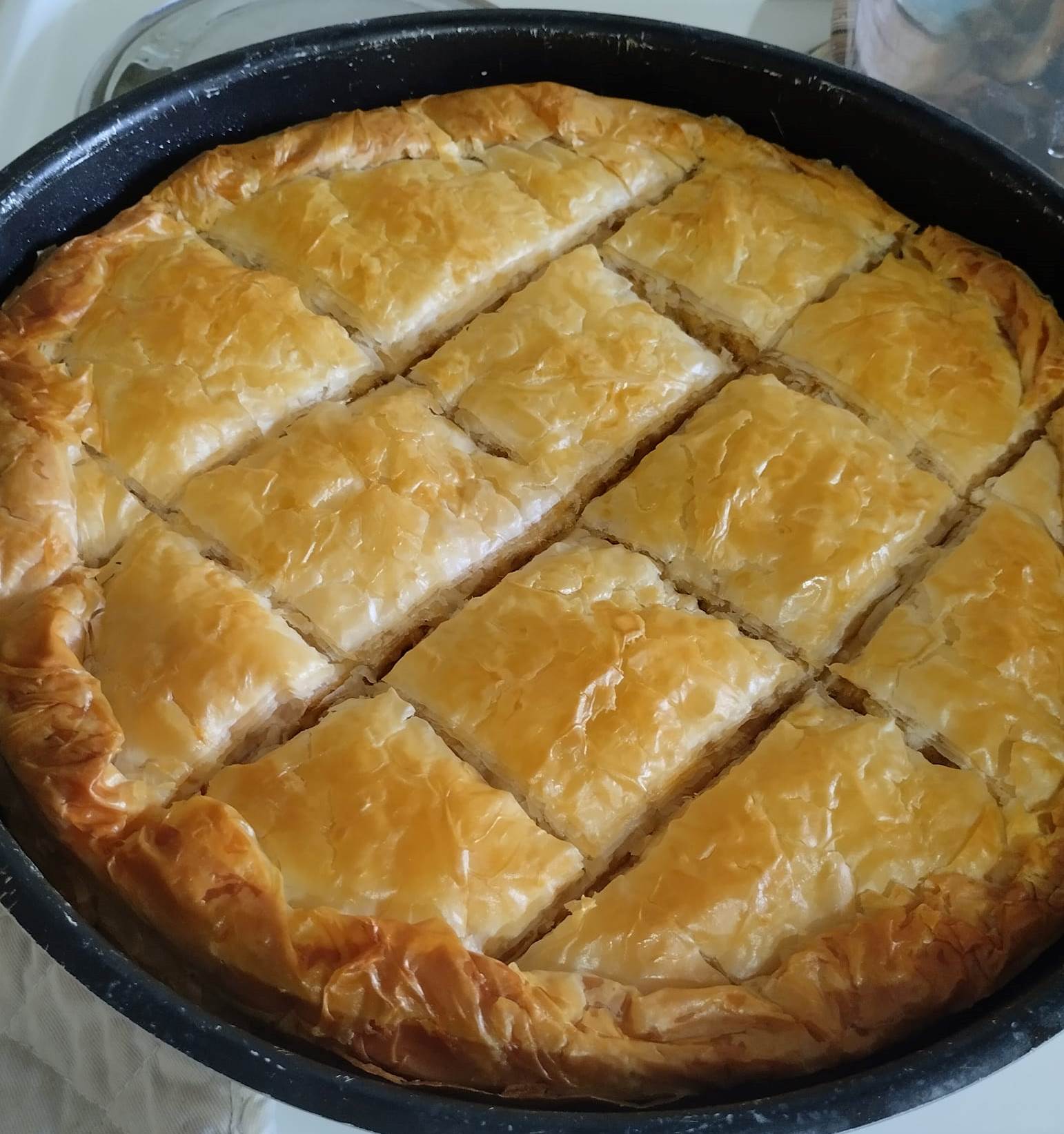 Ψήνουμε για 40-45 λεπτά, ή μέχρι να ροδίσει η πίτα.