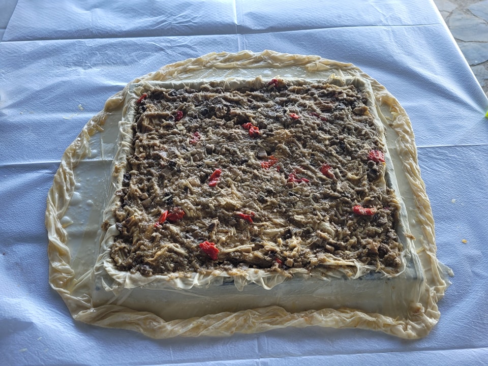 Μελιτζανόπιτα με μανιτάρια με 3 κοθρους