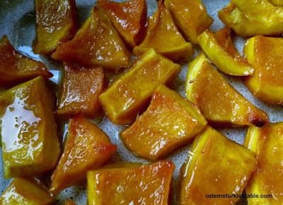 Μετά από 45 λεπτά ψησίματος, ελέγξτε τη γλυκύτητα της κολοκύθας αν σας αρέσει πιο γλυκό, μπορείτε να πασπαλίζετε με μερικά κουταλάκια της σούπας ζάχαρη.