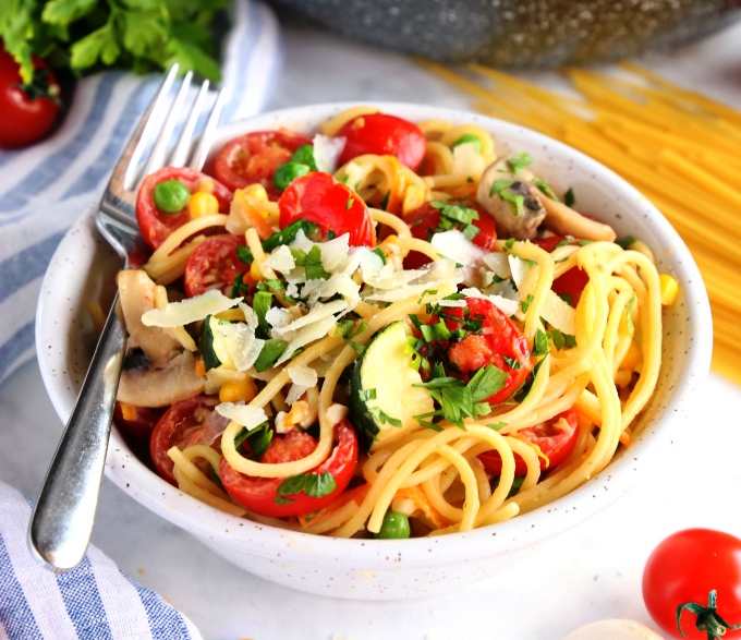 Μακαρόνια με ντοματίνια, μοτσαρέλα και βασιλικό
