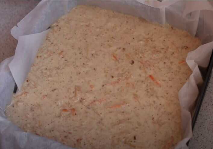 Εφόσον αναμείξω το μείγμα, το αδειάζω σε ένα ταψί στρωμένο με χαρτί ψησίματος (εγώ χρησιμοποίησα ένα 25×25 εκ., αλλά η μαμά μου χρησιμοποιεί 30×20 εκ. ή στρογγυλό 26 εκ.) και ψήνω σε προθερμασμένο φούρνο στους 180°C για 35-40 λεπτά.