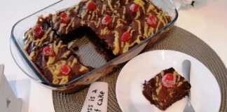 Βγάζουμε το ταψί από το φούρνο και βάζουμε με το κουτάλι της γέμισης μήλου και στη συνέχεια το ισιώνουμε ελαφρά. Η υπόλοιπη σύνθεση χύνεται πάνω στα μήλα και τοποθετείται στο φούρνο για 10-15 λεπτά