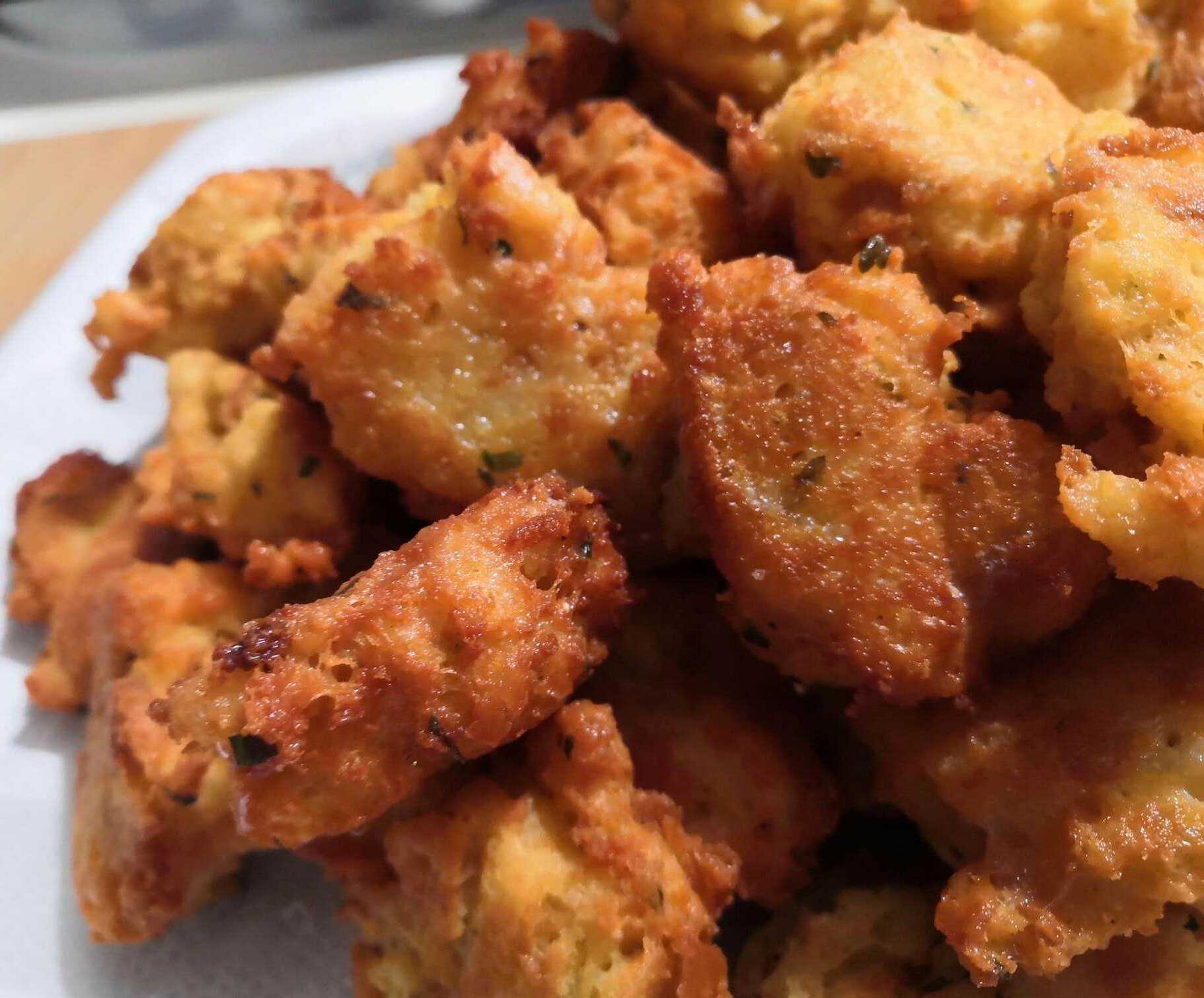 τον μαϊντανό, ανακατεύουμε και με τη βοήθεια ενός κουταλιού αφαιρούμε τη ζύμη και τηγανίζουμε σε καυτό λάδι
