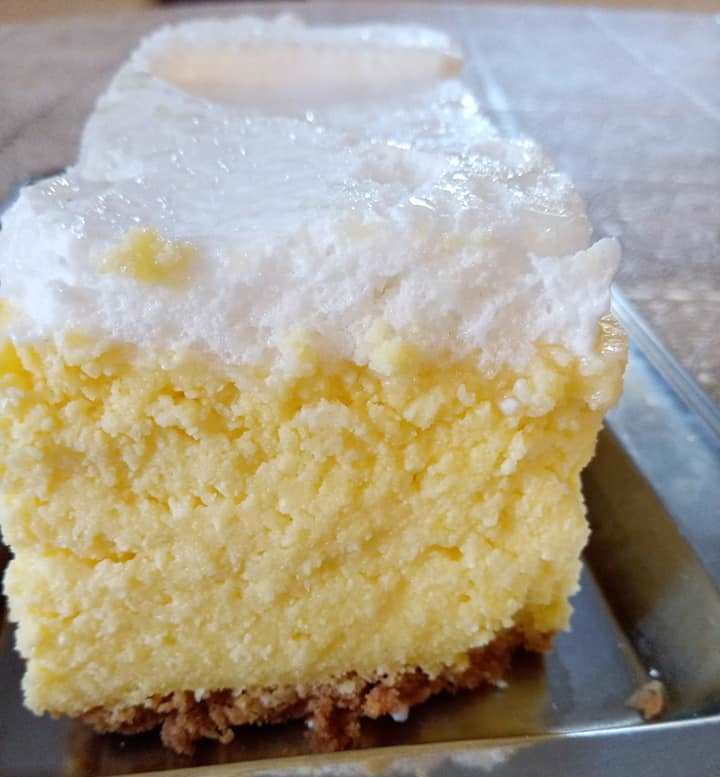 Χτυπάμε τα ασπράδια σε σφιχτό αφρό, προσθέτουμε τη ζάχαρη, χτυπάμε σε μια πλούσια μάζα και απλώνουμε στο ζεστό κεικ, ισιώνουμε προσεκτικά και ψήνουμε ξανά το cheesecake σε θερμοκρασία