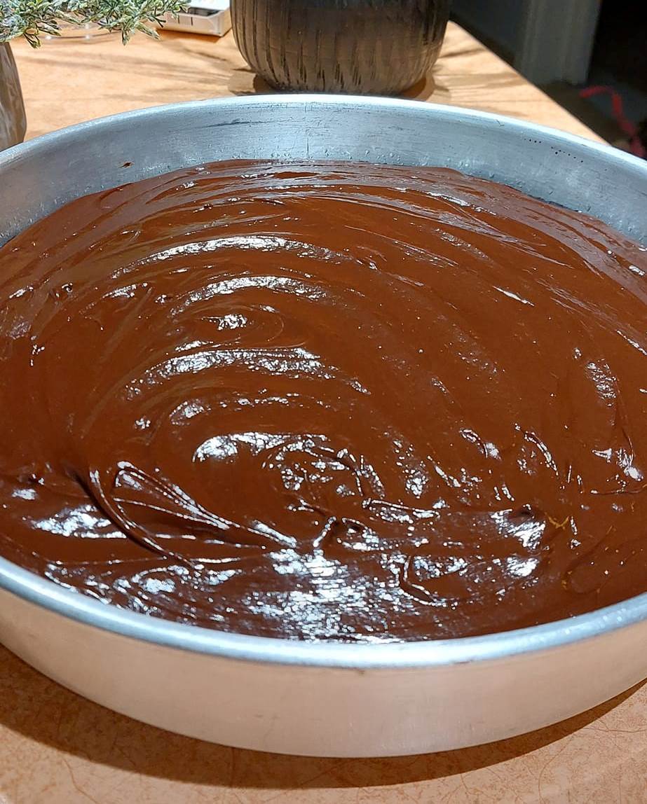 Αφήνετε λίγο στην άκρη και μόλις κρυώσει περιχύνετε τη σοκολατόπιτα.