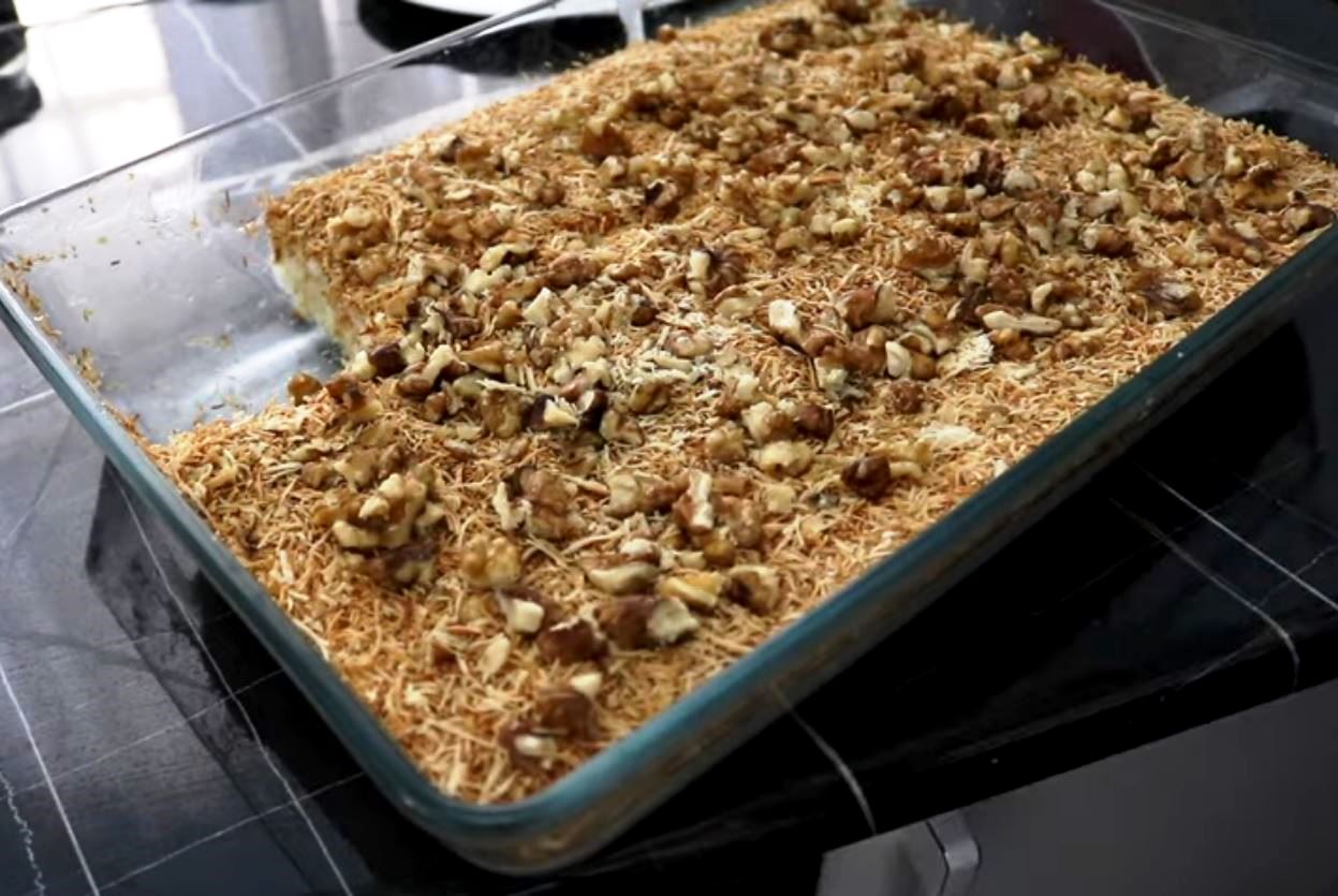 Κανταΐφι με κρέμα και καρύδια