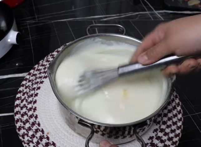 Το βάζω στην φωτιά και το αφήνω να πήξει, ανακατεύοντας μέχρι να βράσει.
