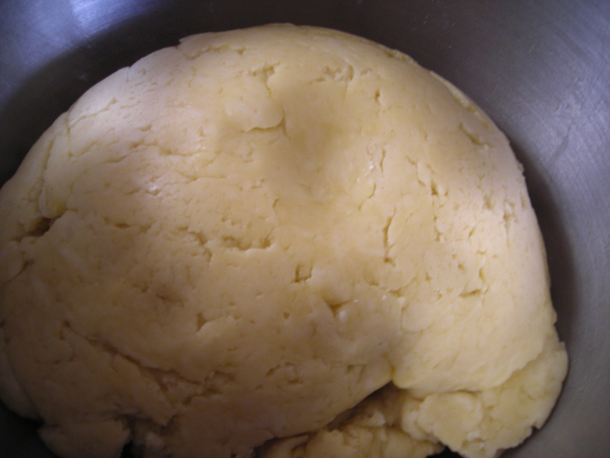 Σε ένα δοχείο, ανακατεύουμε το γιαούρτι με τη σόδα μέχρι να φουσκώσει το μείγμα. Μόλις το γιαούρτι φουσκώσει, προσθέτουμε το βούτυρο και δύο ποτήρια αλεύρι. Αρχίζουμε να ζυμώνουμε με το χέρι, προσθέτοντας σταδιακά κι άλλο αλεύρι αν χρειαστεί, μέχρι να δημιουργηθεί μια πολύ αφράτη ζύμη που μόλις που να ξεκολλάει από το χέρι μας.