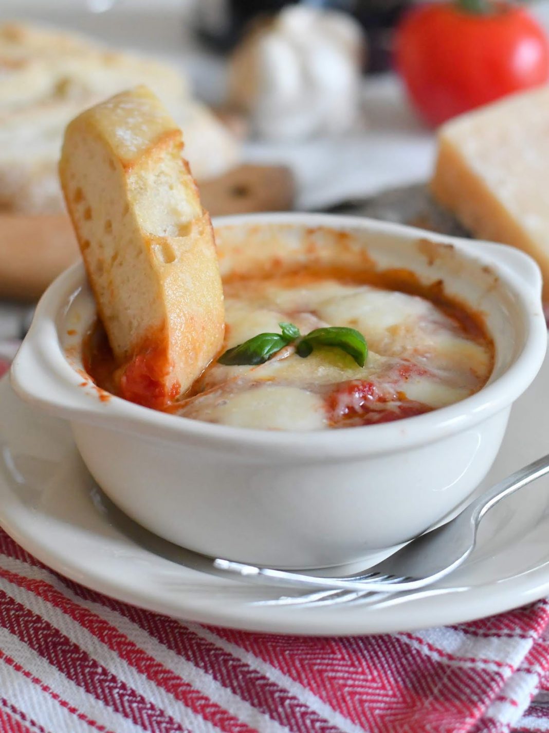 Τελειώστε με ένα στρώμα μοτσαρέλα και πάνω με το τυρί παρμεζάνα. Διακοσμήστε με περισσότερο φρέσκο βασιλικό, αν θέλετε (ή περισσότερη ρίγανη).