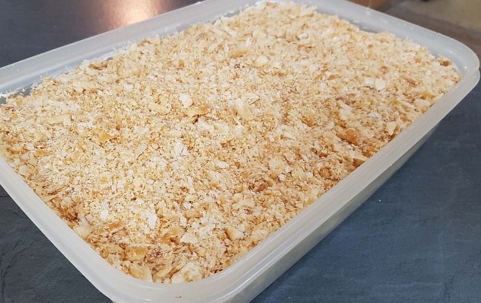 Τέλος, τρίβουμε τα σφολιατίνια, που έχουν περισσέψει, τα απλώνουμε πάνω από τη σαντιγί και το μιλφέιγ μας είναι έτοιμο!