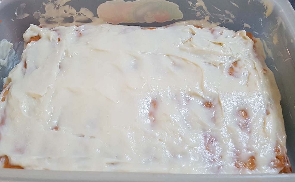 Συνεχίζουμε με τη δεύτερη στρώση σφολιατίνια και από πάνω απλώνουμε την υπόλοιπη κρέμα. Μετά βάζουμε προσεκτικά τη σαντιγί…