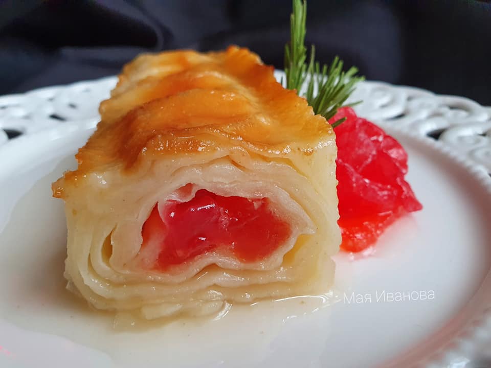 Αφήνουμε να κρυώσει και τραβάμε απαλά κάθε κομμάτι. Πλάθουμε το τριαντάφυλλο. Διακοσμήστε με κλωνάρια φρέσκου δεντρολίβανου. 🤗