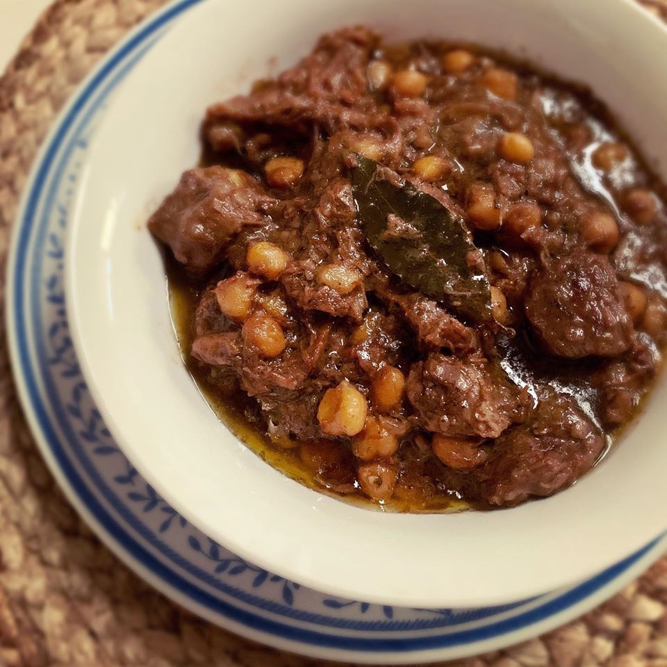 Όταν το φαγητό είναι έτοιμο θα πρέπει να μπορείτε να κόψετε το κρέας με ένα πιρούνι και τα ρεβίθια να είναι μαλακά.