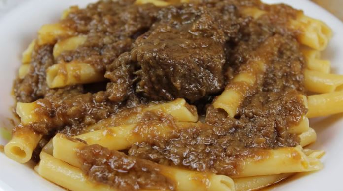 Μετά το μαγείρεμα, η σάλτσα πρέπει να έχει κεχριμπαρένιο χρώμα, τα κρεμμύδια καραμελωμένα και το κρέας καλά γλασαρισμένο.