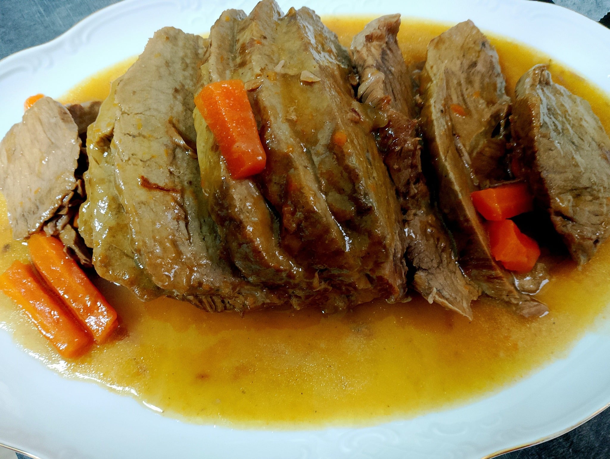Κόψε το μοσχαράκι σε φέτες και σέρβιρέ το με τη σάλτσα. Μπορείς να συνοδεύσεις με πουρέ πατάτας, ρύζι ή νηστίσιμα μακαρόνια.