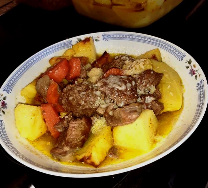 Σημείωση : Με τον ίδιο τρόπο μπορείτε να μαγειρέψετε κατσικάκι ή αρνάκι. *Μπορείτε να μαγειρέψετε το φαγητό χωρίς πατάτες και καρότα.