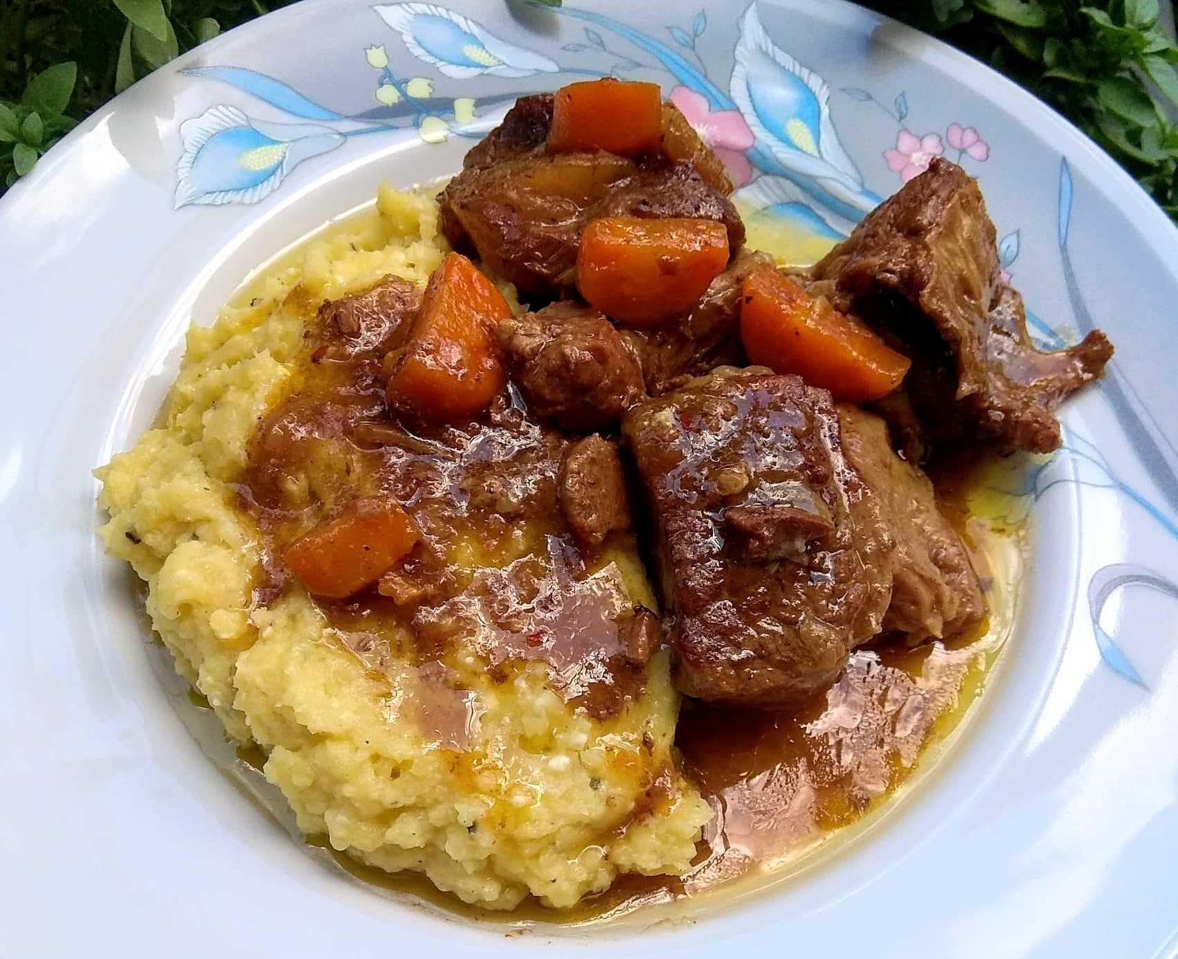 Ανακατεύουμε ανά τακτά χρονικά διαστήματα και αν χρειαστεί προσθέτουμε λίγο Ζωμό! Σερβιρουμε με πουρέ πατάτας.