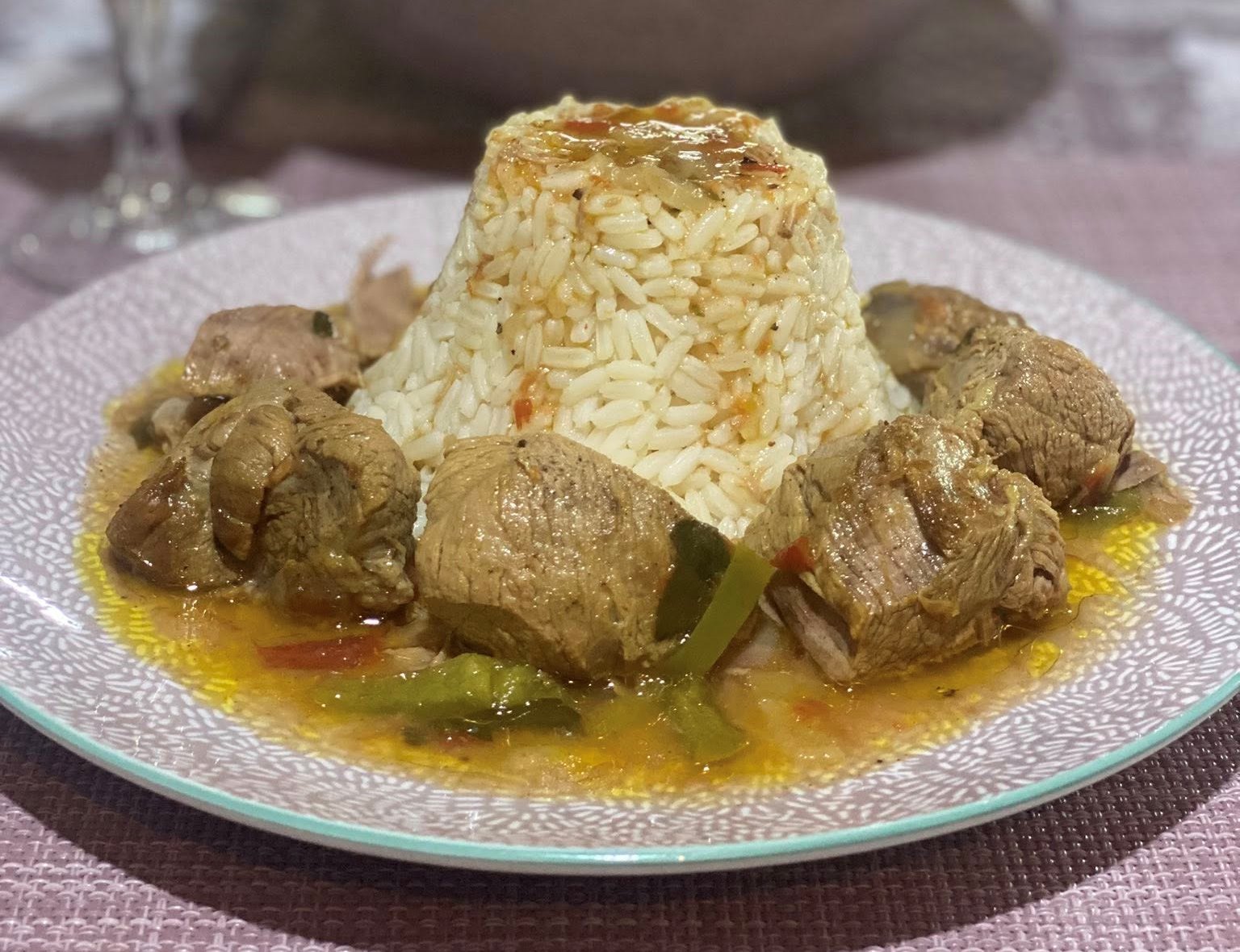 Σερβίρω το μοσχαράκι ζεστό μαζί με το ρύζι.