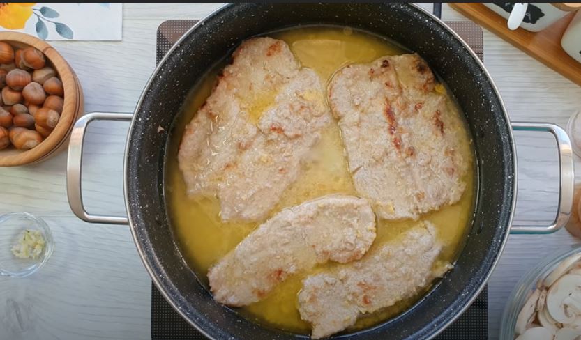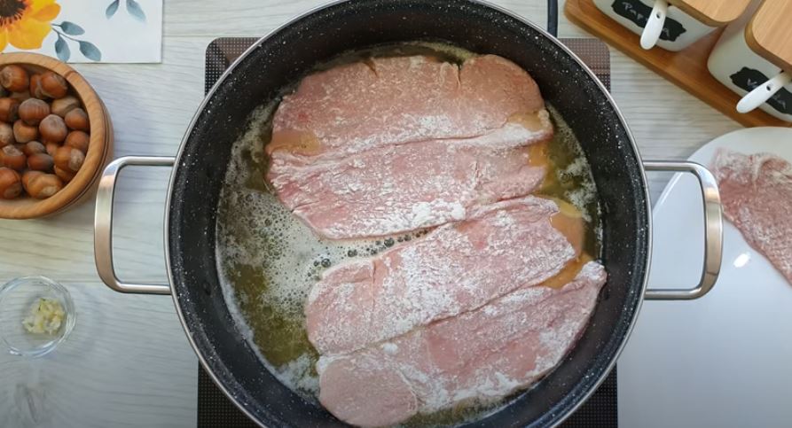 Ρίχνουμε λάδι ή βούτυρο στο τηγάνι και τηγανίζουμε τα φιλέτα μέχρι να ροδίσουν.