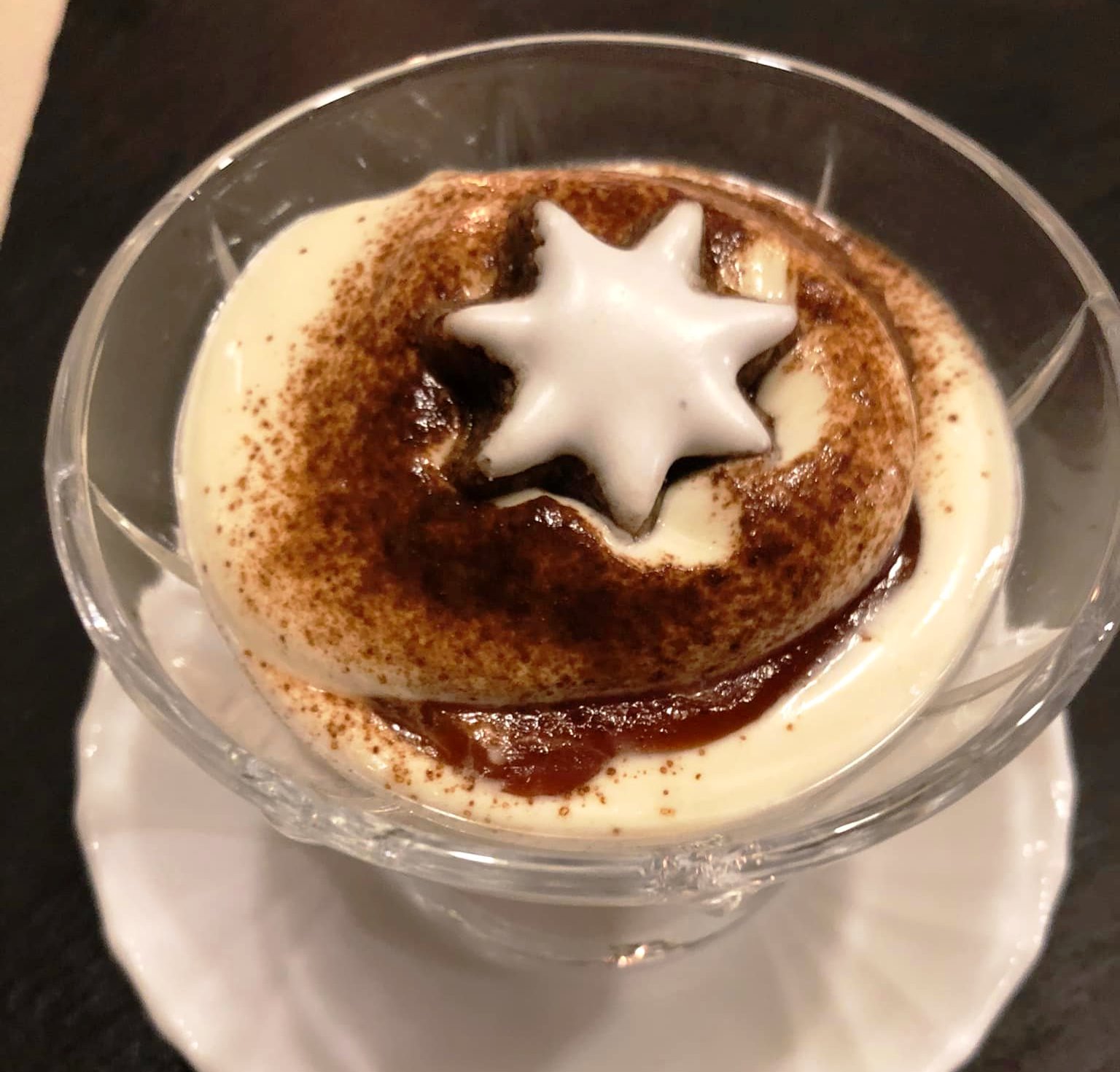 η τελευταία στρώση είναι κρέμα. Διακοσμήστε με καφέ ή κανέλα💜. Προαιρετικά, προσθέτουμε φυστίκι Αιγίνης.