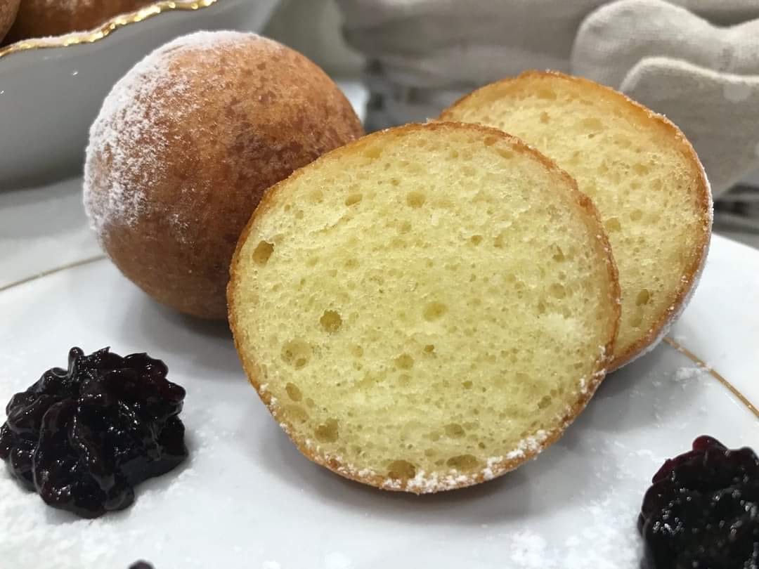 Για ευκολία κόβουμε τη ζύμη στα δύο. Πλάθουμε ένα λουκάνικο και κόβουμε σε ίσα κομμάτια. Σχηματίζουμε μπαλάκια (περίπου στο μέγεθος των καρυδιών). Τηγανίζουμε σε λάδι μέχρι να ροδίσουν. Μπορείτε επίσης να γεμίσετε με μαρμελάδα,