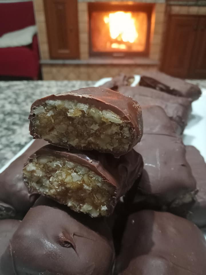 Λιώνουμε τη κουβερτούρα “μπεν μαρί” και κατεβάζουμε από τη φωτιά. Μόλις κρυώσει ελαφρώς, βάζουμε τις κρύες μπαρες στη κουβερτούρα και με τη βοήθεια ενός πιρουνιού,