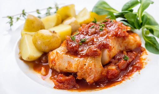 Μπακαλιάρος με σάλτσα ντομάτας και θυμάρι