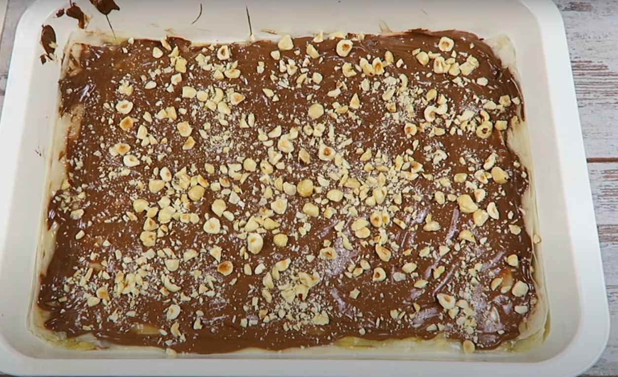 Ρίχνουμε λίγη νουτέλλα και λίγα φουντούκια.