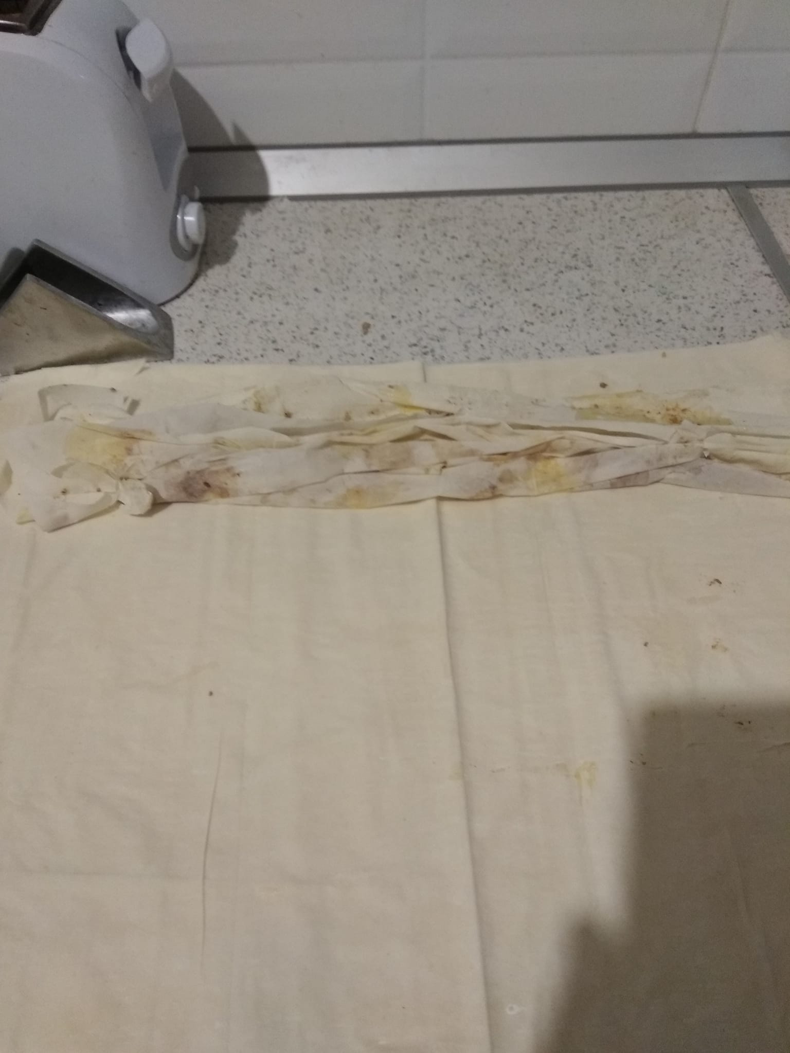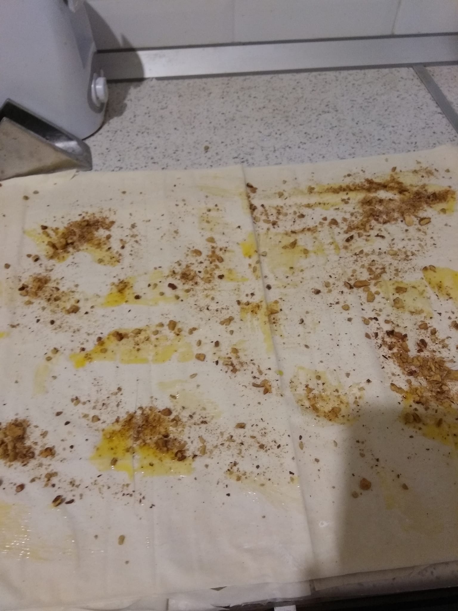 και τα στρώνουμε στο ταψί στριμωχτα μέχρι να τελειώσουν τα φύλλα αλείφουμε από πάνω μετο βούτυρο που περισεψε και ψήνουμε σε προθερμασμενο φούρνο στους 180 για 20 λεπτά.
