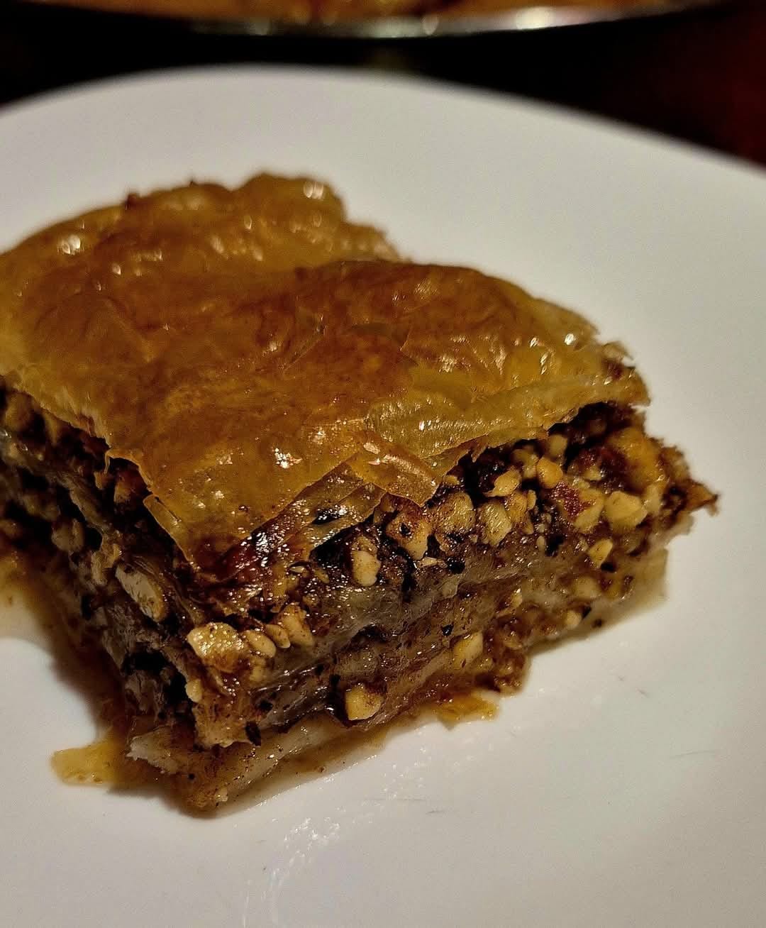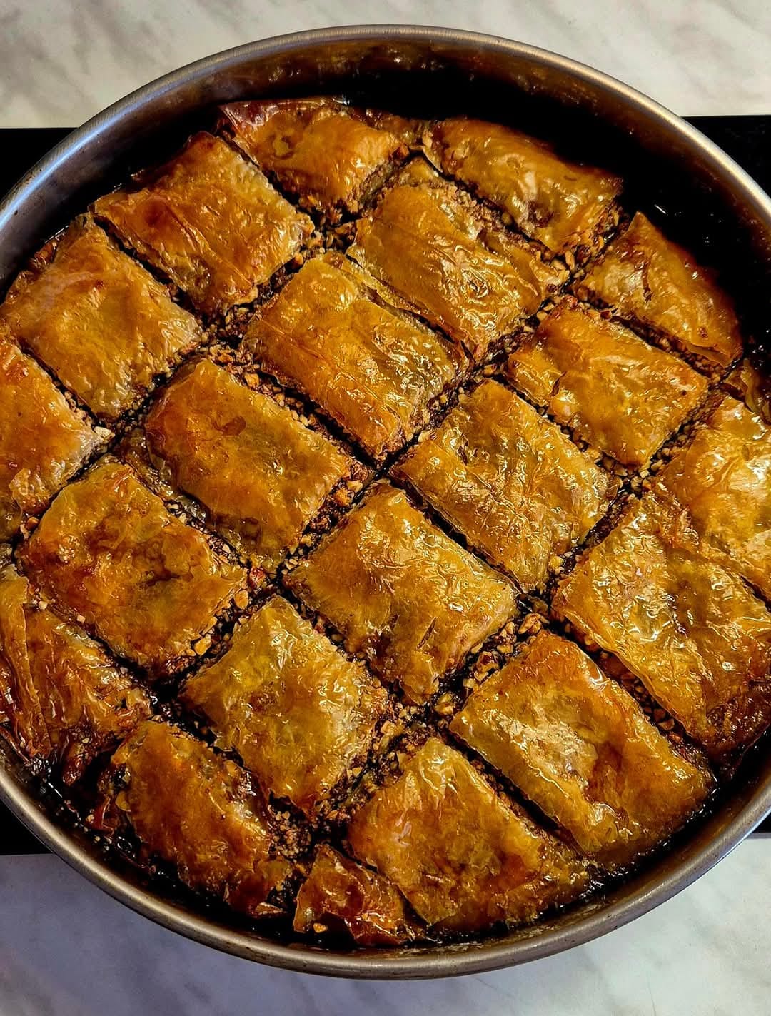 Αφήνουμε τον μπακλαβά να απορροφήσει το σιρόπι για τουλάχιστον 2 ώρες, ή καλύτερα όλη τη νύχτα.