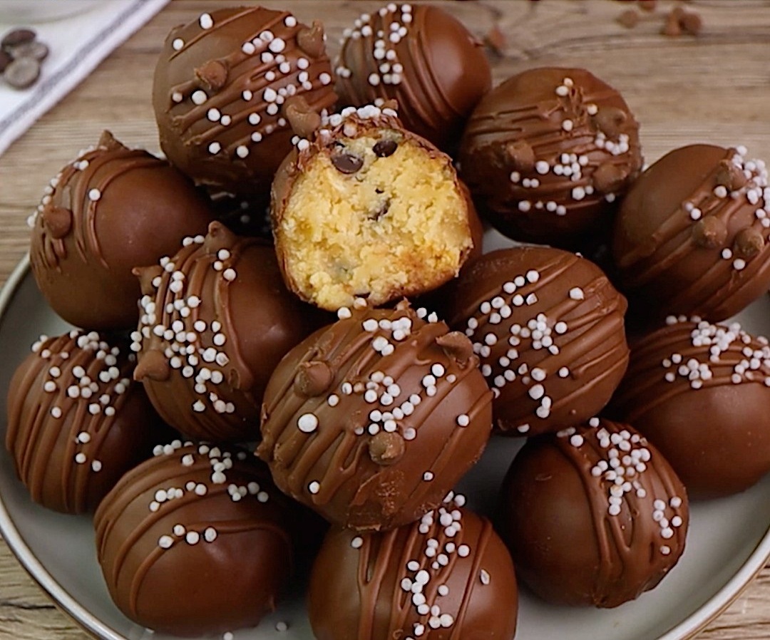 Πλάθουμε τα μπαλάκια από το μείγμα και τα μεταφέρουμε στην κατάψυξη για 40 λεπτά.