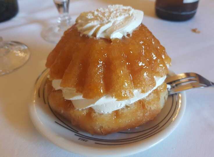 να φουσκώσει, για περίπου 1 ώρα. Σε μικρά φορμάκια ρίχνουμε το χυλό από το μπαμπά και περιμένουμε μέχρι να φουσκώσει, περίπου 30΄. Παίρνουμε τα φορμάκια τα βάζουμε σε προθερμασμένο φούρνο στους 170 μέχρι να ροδίσουν για 25-30΄ περίπου. Χτυπάμε τη κρέμα γάλακτος μέχρι να γίνει σαντιγί και τη βάζουμε στο ψυγείο.