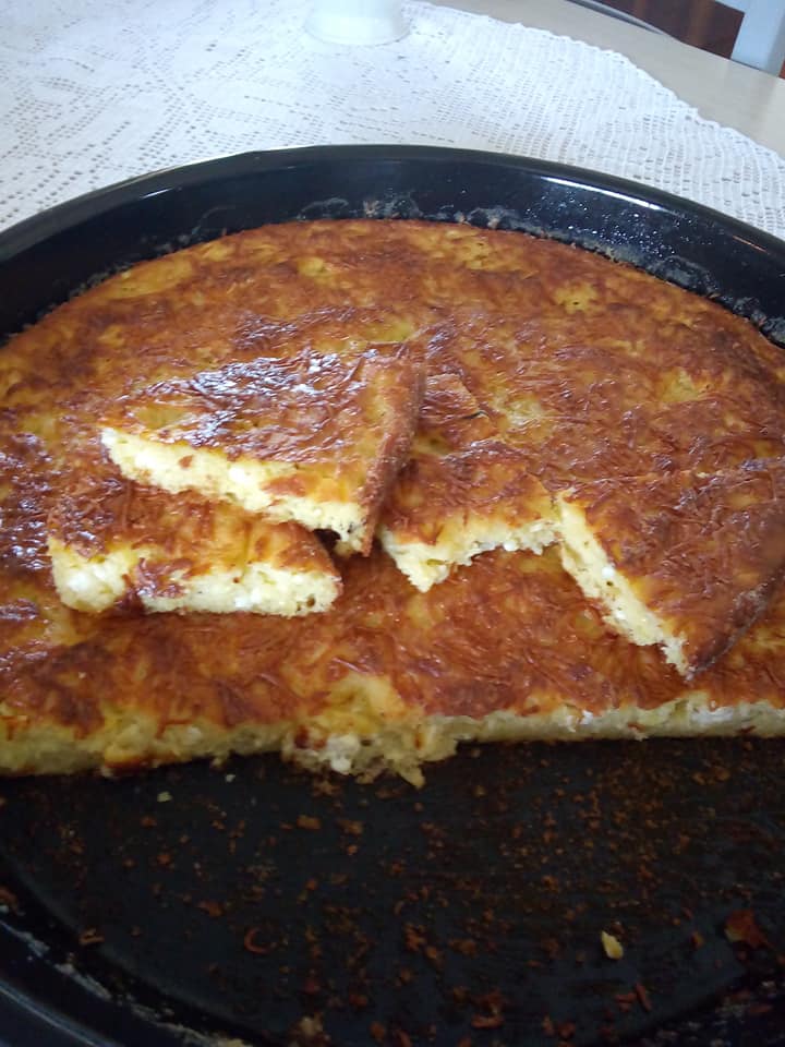 Ριχνουμε το μίγμα απο πανω λιγο κεφαλοτυρι και λιγο λαδι και ψηνουμε μιση ώρα 200 βαθμούς να ροδισει καλά…