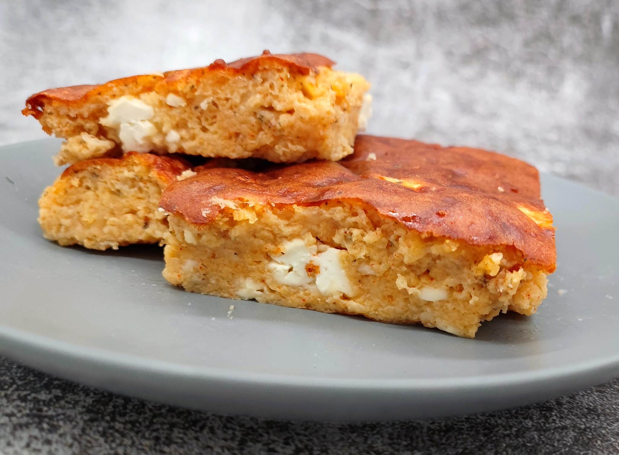 Ανακατεύουμε το τυρί φέτα και το κίτρινο τυρί, και ανακατεύουμε, προσθέτουμε το αλεύρι, το μπέικιν πάουντερ και ανακατεύουμε ξανά πολύ καλά.