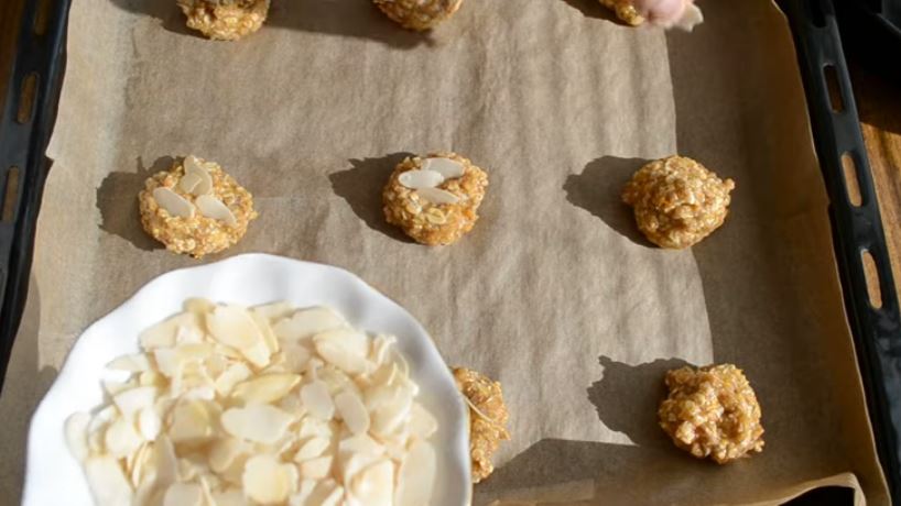 Ψήνουμε σε προ θερμασμένο φούρνο 180 βαθμούς για δώδεκα λεπτά, ώστε τα cookies μας να είναι έτοιμα τέλεια ψημένο και ξέρετε σε τέτοια μπισκότα με κρούστα τα ψημένα αμύγδαλα μυρίζουν πολύ ωραία και τώρα θα δοκιμάστε