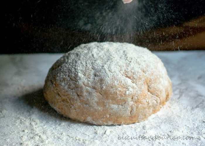 Βάλτε τη ζύμη σε μια ελαφρώς αλευρωμένη επιφάνεια, ζυμώντας 4 ή 5 φορές.