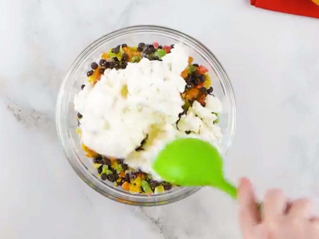 Ανακατέψτε όλα τα συστατικά για την γέμιση. Η γέμιση πρέπει να έχει καλή συνοχή. Εάν η γέμιση είναι πολύ υδαρή, προσθέστε μερικά τριμμένα μπισκότα.