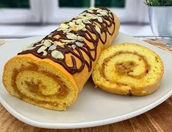 Κοπή Ρολών: Το τυλίγμα σε ρολό πρέπει να γίνει αμέσως μόλις βγει το γλυκό από τον φούρνο. Αν κρυώσει, θα σπάσει κατά το τύλιγμα.